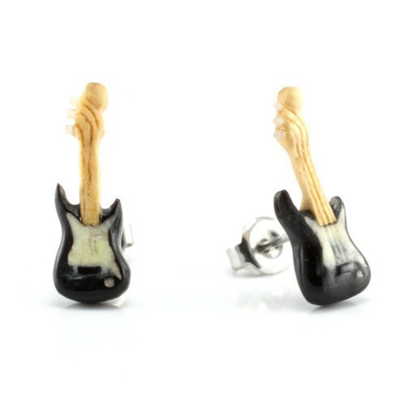 These electric guitarstud earringsare handcarved from horn, bone and crocodile wood by Urban Star Organics. The postsand friction backs aremade from 316L stainless steel.Last chance to own these! We can't restock this design because Urban Star is no longer