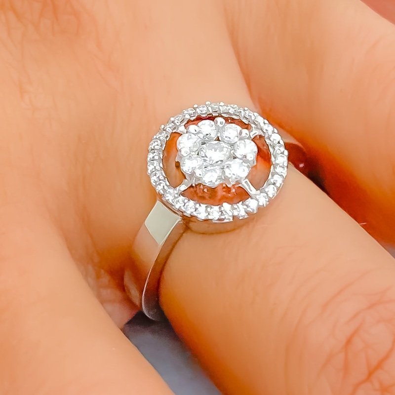 Elegant Floral Open Round Diamond + 18k Gold Ring