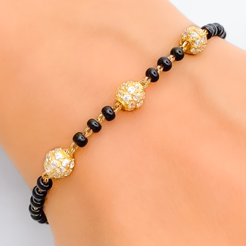 Elegant Orb 22k Gold Black Bead Bracelet