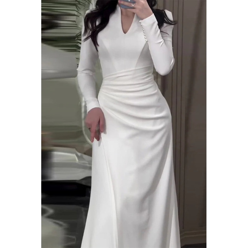 Elegant solid color pleated V-neck wrap dress for evening dress