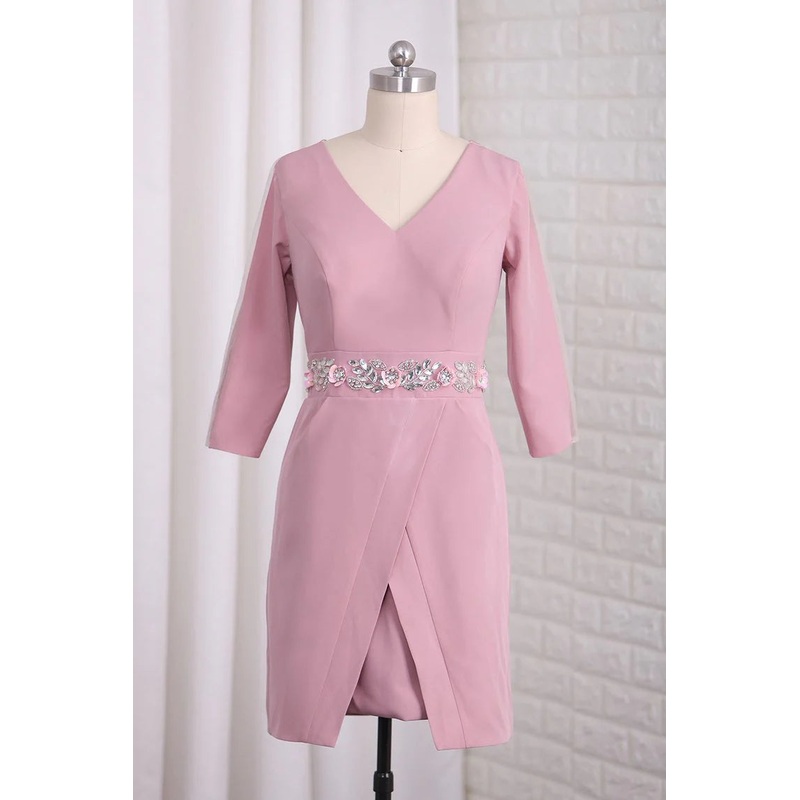 Elegant V-neck satin backless set with beaded bride Mother Of The Bride