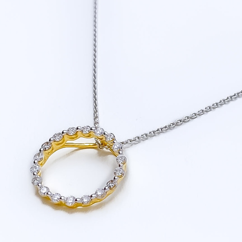 The Elevated Halo Diamond + 18k Gold Pendant, with a gold weight of 0.94 grams, exudes sophistication and charm. Crafted in 18k yellow gold, it features a refined finish that beautifully showcases the pendant's design. Centered by a 0.34ct diamond of G-H c