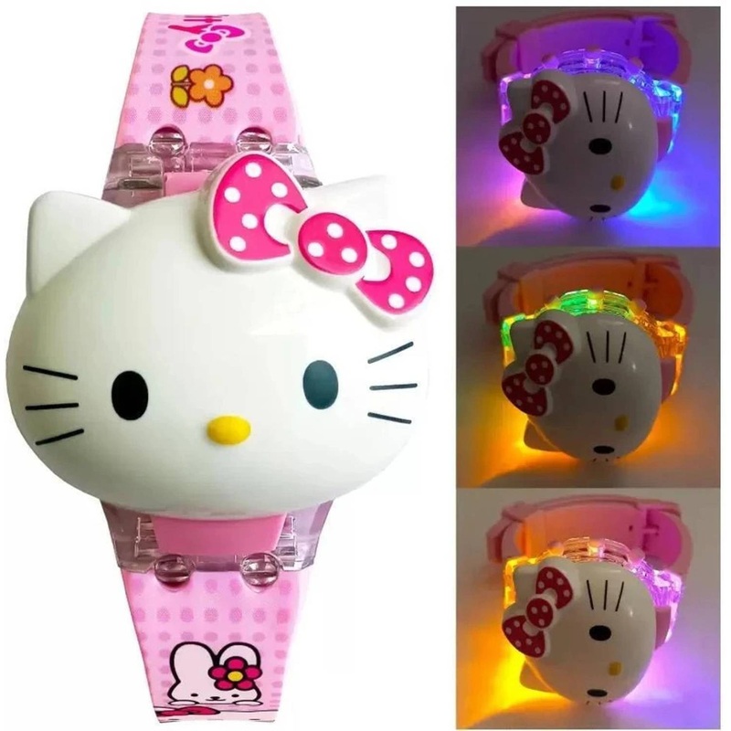 ElhifyGift For Kids Cute Cat Glowing Light and Disco Music Digital Watch for Kids Digital Watch – For Girls 3D Action Figure Hello Kitty Face Based Toy Design Digital Glowing & Music Watch