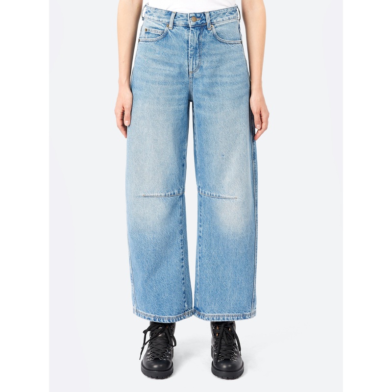 Soeur Elliot are wide-leg trousers in denim with a feminine cut. The curved leg design slims the waist, while the light wash offers a style that combines casual and elegance.Mid-riseButton closure with zip flyFive pocket constructionLeather patch at the ba