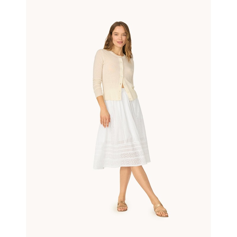 timeless elegance with an easy fit. this cotton voile skirt is finished with pintuck and shirred detailing and embroidered trim.