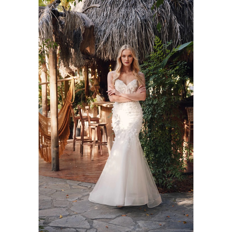 Embroidered floral decal long sleeveless tight corset wedding dress