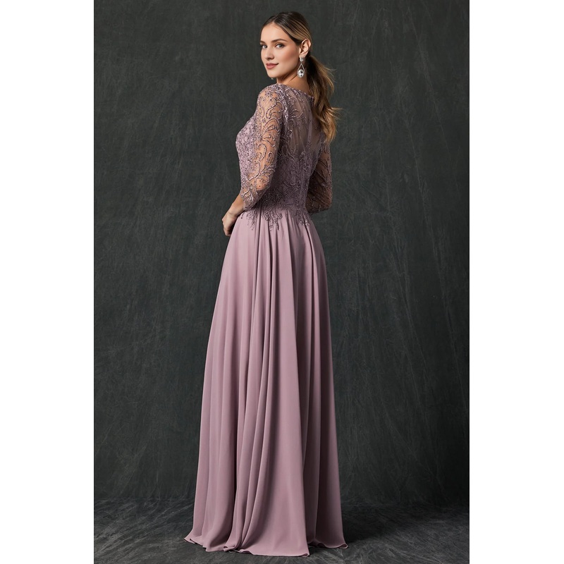 Embroidered long sleeved chiffon dress