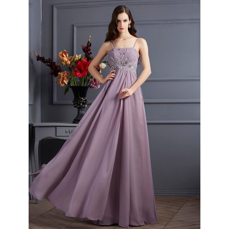 Empire Spaghetti Straps Sleeveless Beading Long Chiffon Dresses