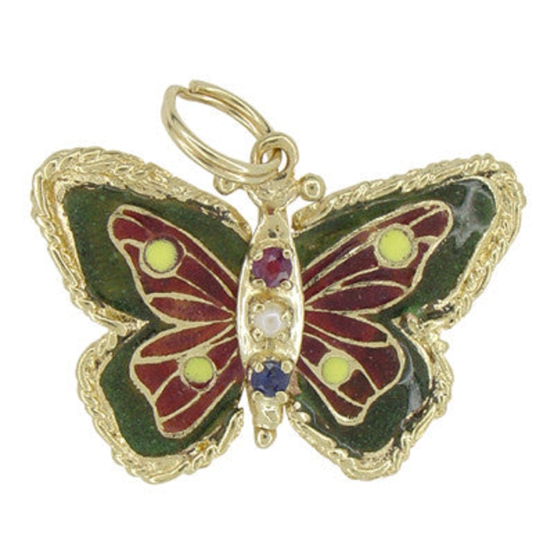Enameled Gem Set Movable Butterfly Pendant in 14 Karat Gold