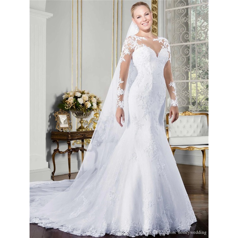Engagement Formal Fall Wedding Dresses Mermaid / Trumpet Illusion Neck Long Sleeve Court Train Lace Bridal Gowns With Summer Wedding Party Womens Clothing