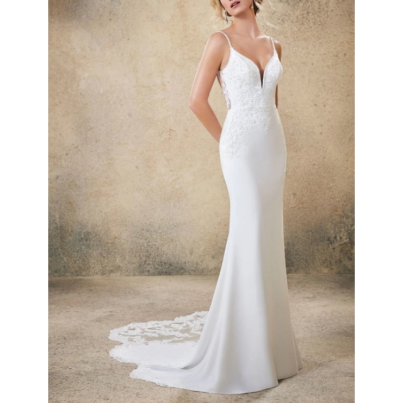 Engagement Open Back Formal Boho Wedding Dresses Mermaid / Trumpet Sweetheart Camisole Spaghetti Strap Court Train Lace Bridal Gowns With Beading Lace Insert