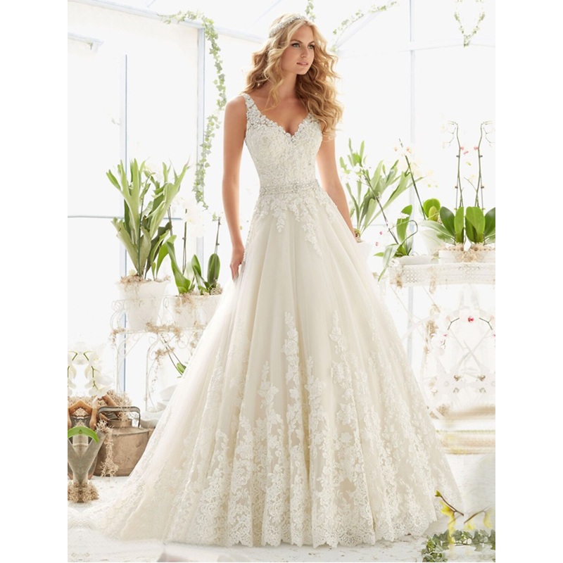 Engagement Open Back Sexy Formal Wedding Dresses A-Line V Neck Sleeveless Court Train Lace Bridal Gowns With Summer Wedding Party, Women's Clothing