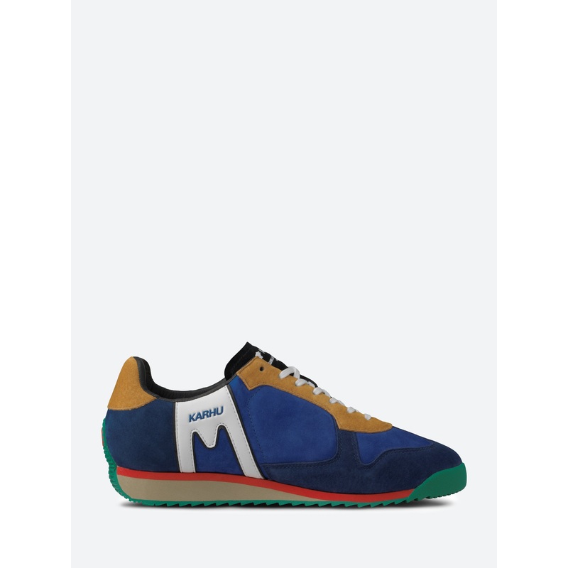 This season, KARHU is excited to introduce the second collaboration with Engineered Garments. Drawing from KARHUs rich archive, the shoe seamlessly merges the iconic Mestari running shoe with KARHUs cross-country skiing shoe, the Sprint, in an eye-catching
