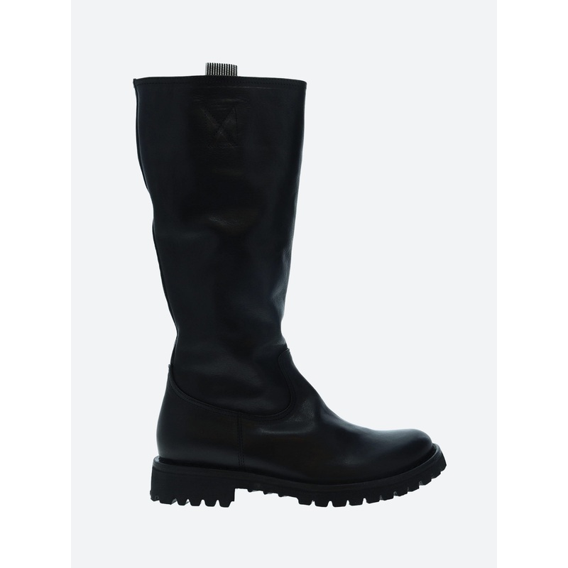 These sassy boots are a slouchy version of the equestrian boot with true F+B edge.Knee-high bootsPull-on styleRound toeThick rubber flared outsoleMeasurements:35 mm heelMaterialsUpper natural leatherLining: leatherOutsole: rubberMade in ItalySize GuideStyl