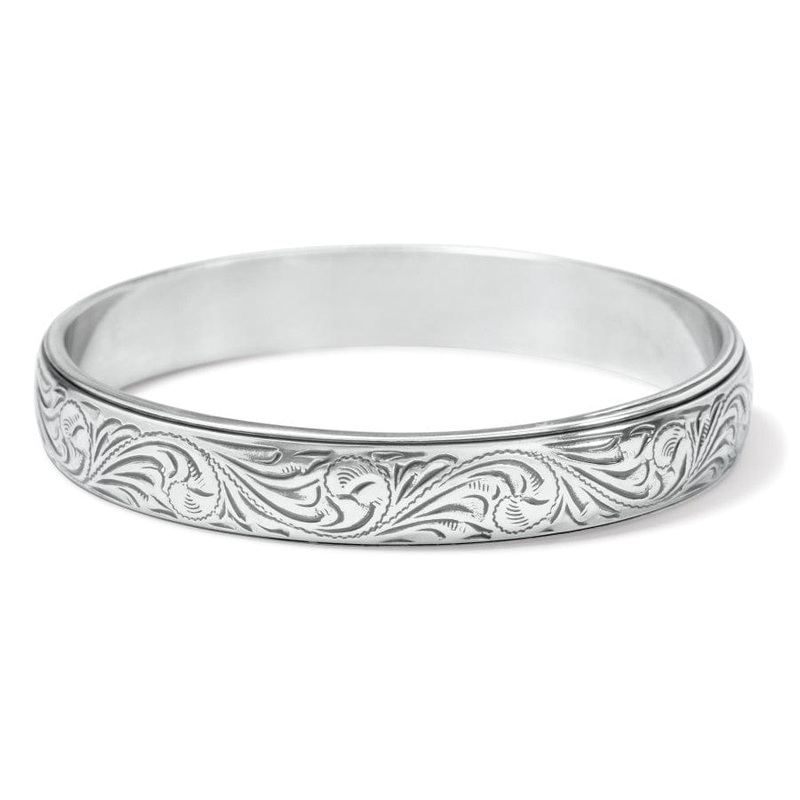 Classic etched scrolls make this silver-plated bangle todays treasure and a future heirloom.