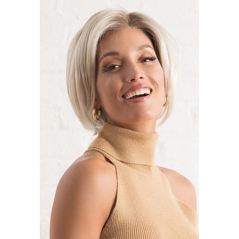 A short classic layered bob with side swept bangs and tapered nape.Naturelle CollectionMedium LengthColor Shown: Sunlit Blonde, R8/26HCap Design: Lace Front CapHair Fiber: Synthetic WigSize: AverageWeight:2.68 ozDensity: Medium DensityLength:Bang: 6" | Cro