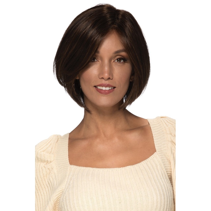 Sleek and smooth, Meritts distinctive layering creates a face-framing bob that flatters all face shapes. Long, side swept bangs soften the face, completing this stylish look.Color Shown:R6/28FCap Design: Lace Front Cap, Monofilament Top CapHair Fiber: Synt