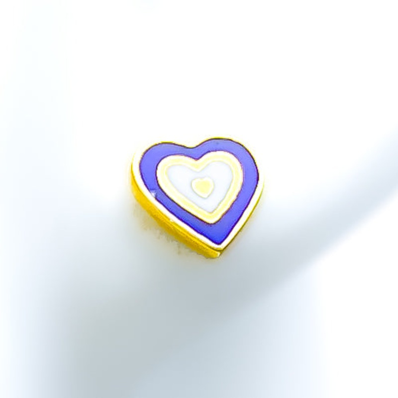 Delicate and enchanting, these 21k gold heart earrings radiate timeless beauty with their intricate decorative design. Weighing 1.5 grams, their luminous yellow gold finish enhances their refined craftsmanship, adding a touch of elegance to any look. With a petite 0.3-inch diameter, these charming tops offer a subtle yet graceful presence, perfect for everyday wear or special occasions. Secured with a convenient push-back post, they ensure a comfortable and secure fit. Designed for those who appreciate ethereal charm with a romantic touch, these earrings make a beautiful and versatile addition to any jewelry collection.