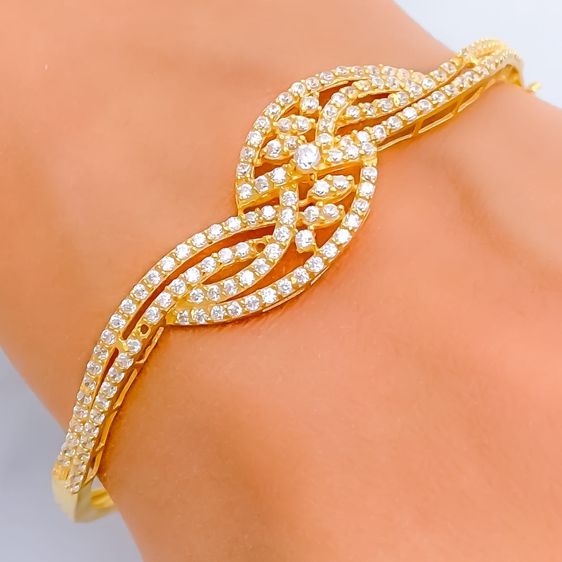 Ethereal Decorative 22k Gold CZ Bangle Bracelet