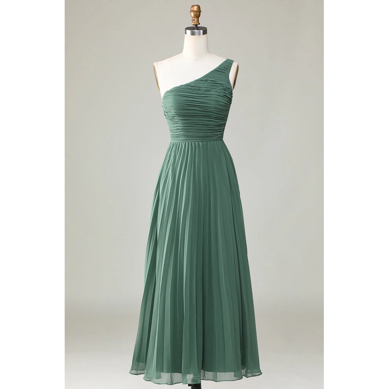Eucalyptus one shoulder A-line pleated bridesmaid dress