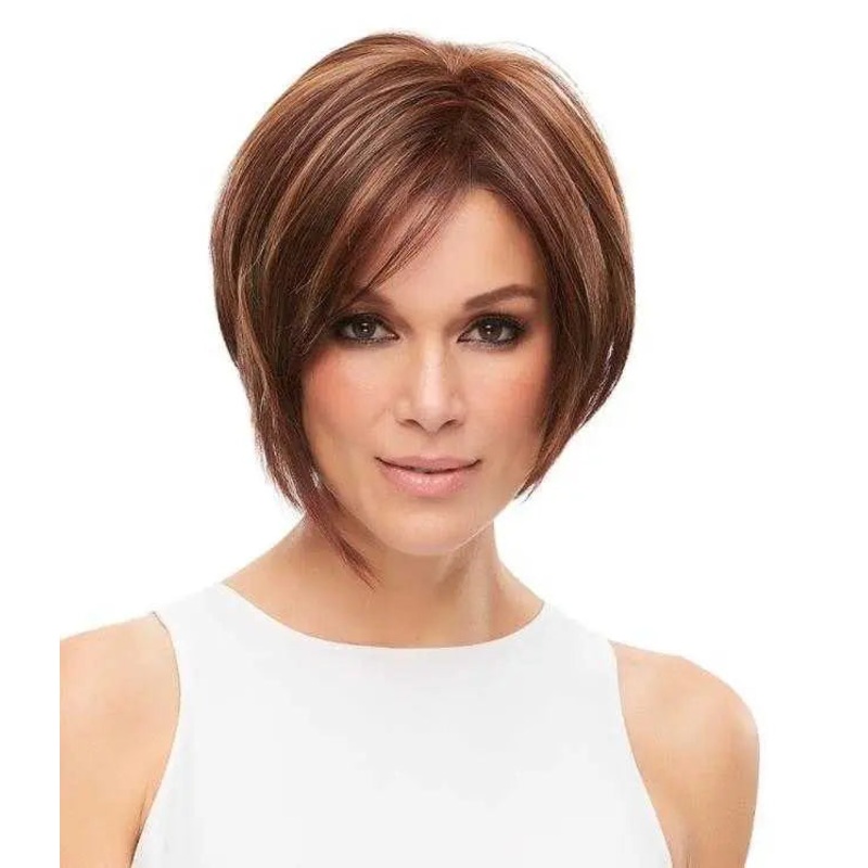 The latest addition to our heat resistant wig collection! With her asymmetrical style, Eve is edgy while gracefully chic. This stacked bob has it all: heat resistant fiber that can be styled with hot tools, a discreet lace front and an invisible single monofilament top.