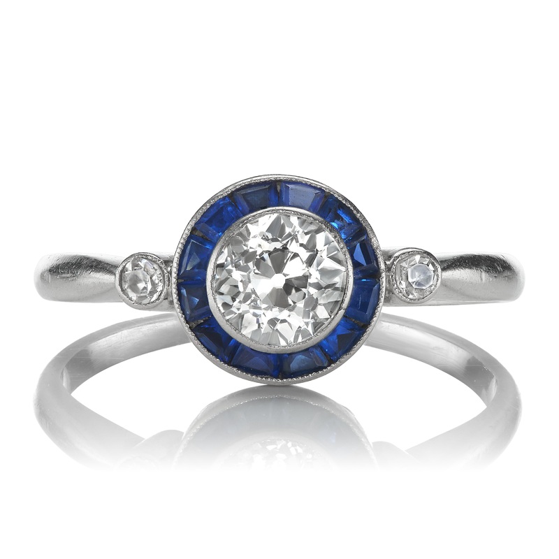 Art Deco Sapphire and Old European Cut Diamond Target Ring
