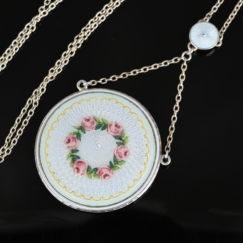 Exceptional Guilloche Enamel Edwardian Locket Necklace