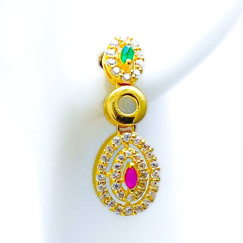 Exquisite Colorful 22k Gold CZ Hanging Earrings