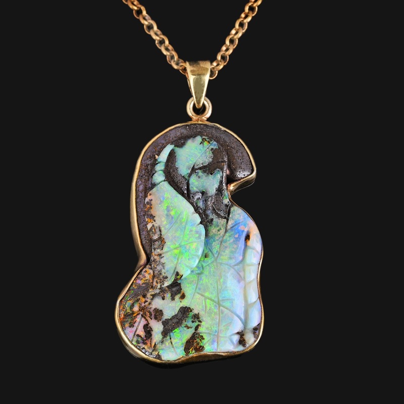Extra Large Carved Leaf Boulder Opal Pendant Necklace