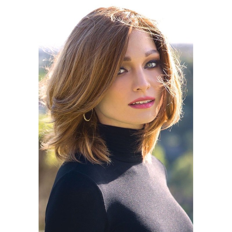 Emily from the Fair Fashion Collection is a short Human Hair wig. This straight ready-to wear wig is a soft, feminine style designed to give movement. Emily comes in a Natural Cap with lace front which is completely a breathable cap which gives a natural feeling to the wearer. The top part is made with special lace mesh which hides the knots giving the impression that the hair grows directly from the scalp with a very natural look. Other features with the Natural Cap is its 100% hand-tied and includes polyurethane patches for an optional use of double-sided tape.
