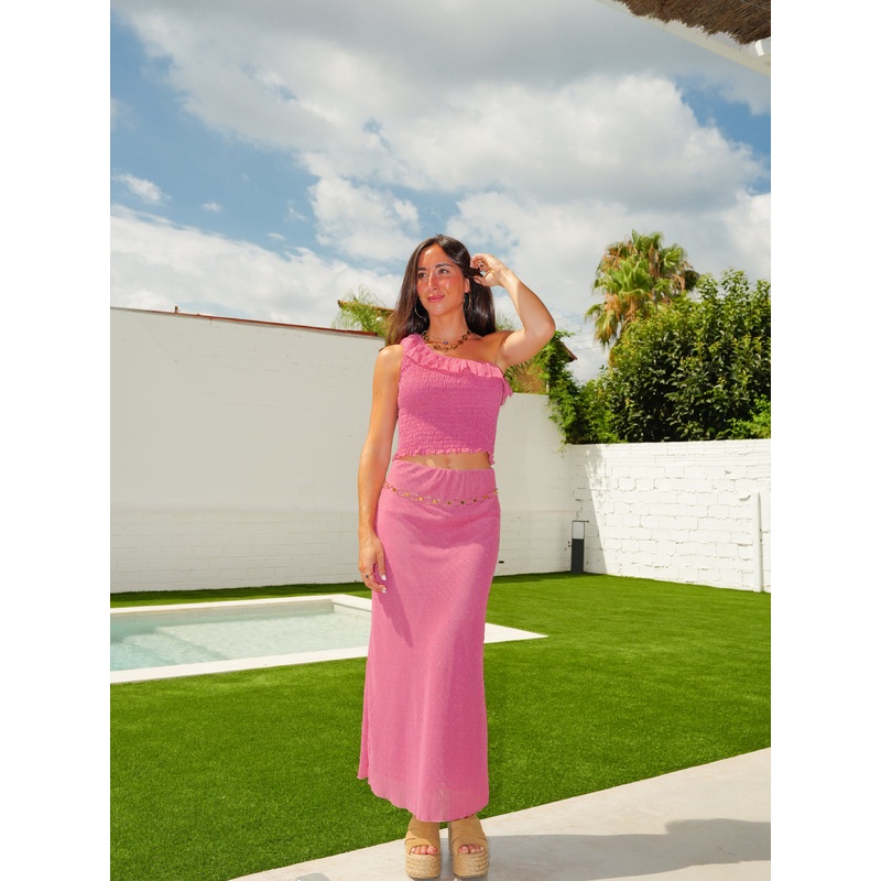 Falda largade gasa con detalle de bordado. Es elstica.Topa conjunto disponible.Talla nica (sirve desde la 32 hasta la 38)Modelo: altura 160 cm, Pecho 95 cm, Cintura 65 cm, Cadera 93 cmComposicin: 95% poliestery 5% elastanoEste artculo est diseado y fabrica