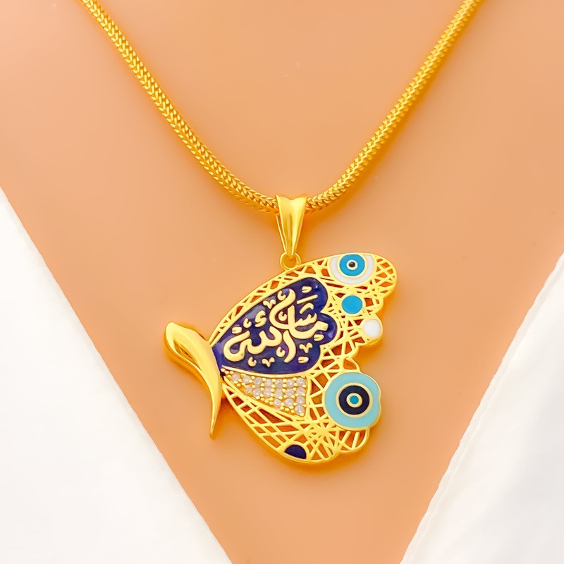 Fancy Butterfly Adorned 21k Gold Allah Pendant