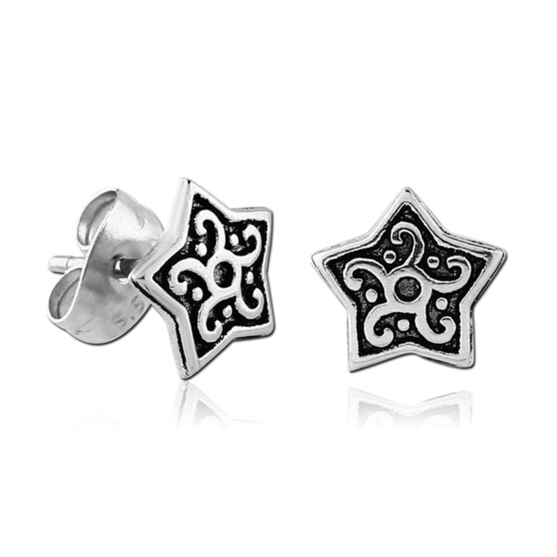 These 20 gauge fancy star stud earrings are made from cast 316L stainless steel.