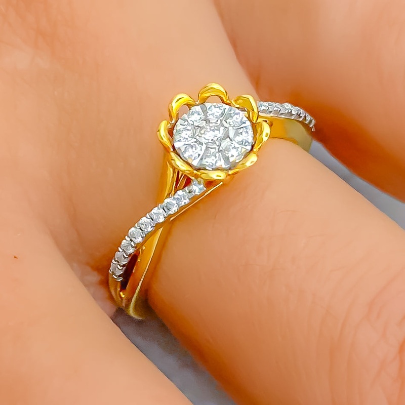 Stylish Sparkling 18K Gold + Diamond Ring