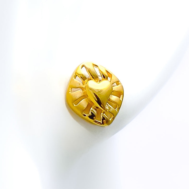 These 22k gold top earrings, weighing 1.7 grams, feature a chic and elegant design that complements any outfit. The polished yellow gold finish enhances their refined allure, while the 0.3-inch length offers a subtle yet stylish accent. Secured with a screw-back post, these earrings blend practicality and timeless elegance, making them a versatile addition to your everyday or formal jewelry collection.