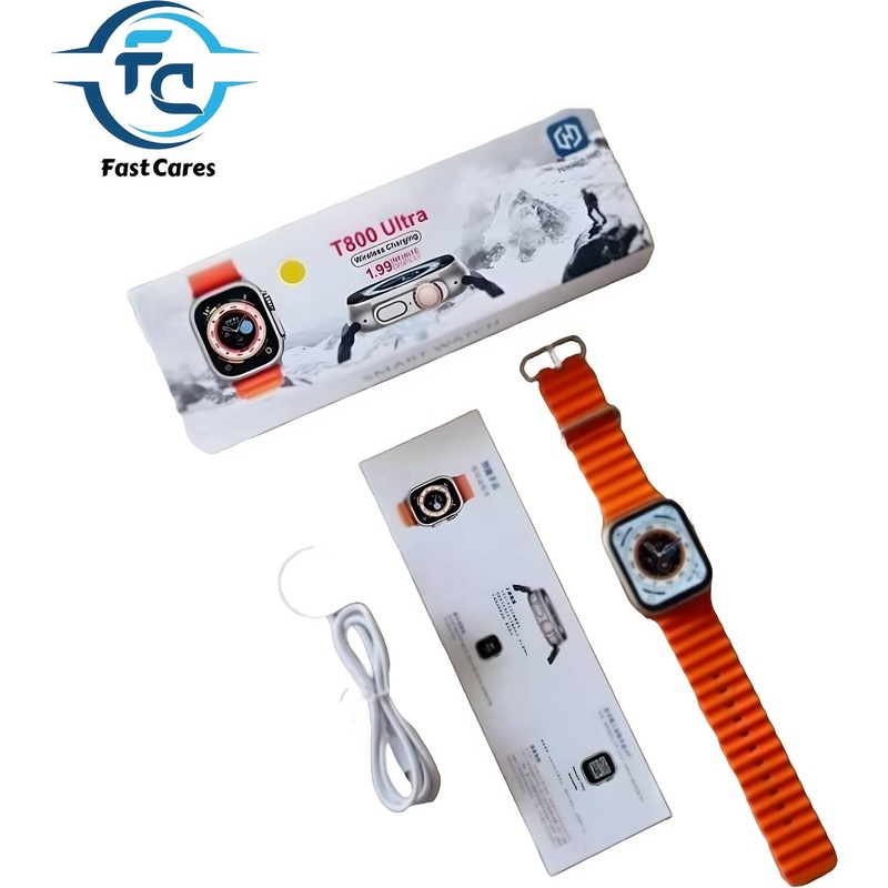 BrandFastCaresDisplay TypeDigitalIdeal ForBoys & GirlsMechanismYesStyle CodeUltra 01SeriesT800 ultra smart watch with wireless charging Smart Watch (Without Sim Card)OccasionCasual, Formal, Party-Wedding, SportsMovementDigitalPack of1Sales Package1 X Smart watch ,, 1 X User Manual, 1 X wireless charging cableShock ResistanceYesModel NameT800 ultra smart watch with wireless charging Smart Watch (Without Sim Card)Strap ColorOrangeNet Quantity1TrendColored dialsWatch FeaturesWater ResistantDial ColorOrangeDial ShapeSquareStrap ColorOrangeWorld TimeYesDual TimeYesStrap TypeSiliconStrap Material for RefinerSiliconeStrap DesignOrange SiliconCase/Bezel MaterialGlassWater Resistance Depth50Power Reserve IndicatorYesLightWhiteClasp TypeNAMoonphaseYesWidth4 mmThickness3 mmDiameter5 mmWeight100 gDomestic Warranty1 MonthsInternational Warranty1 YearWarranty PeriodNACovered in WarrantyNANot Covered in WarrantyNAWarranty SummaryNAUnleash Connectivity: Harness the power of NO, SIM CARD OPETION support, enabling seamless calls, texts, and internet access directly from your wrist. Complete Android Integration: Experience the full range of Android functions on your watch, from accessing the Play Store to downloading and using your favorite apps. Personal Assistant on Your Wrist: Stay organized with features like calendar management, weather updates, fitness tracking, and more, all easily accessible. Freedom from Your Phone: Make and receive calls, send messages, and stay connected without the need to carry your smartphone. Effortless Entertainment: Stream music, watch videos, and access entertainment apps, turning your watch into a portable entertainment hub. Productivity Redefined: Manage your tasks, check emails, and stay productive with a suite of tools and functionalities, transforming your watch into a productivity powerhouse. Convenience at Every Step: Enjoy the ease of accessing Android functions seamlessly on your wrist, redefining convenience and connectivity in wearable technology.Manufacturing, Packaging and Import InfoRead More