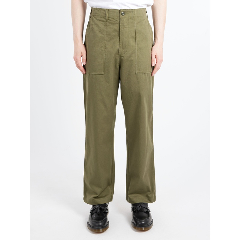 A fatigue-style trouserinspired by the original military pant, with roomy pockets and a slightly oversized fit.Sits on waistButton closure with zip flyBuckle waist adjustersTwo front patch pocketsTwo rear buttoned flap patch pocketsStraight fitMaterialsFab