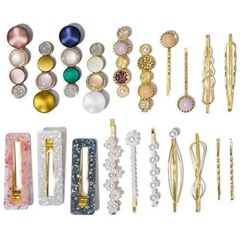 Faux Pearl Clips and Pins Hair Barrettes SetDecorate your hair with these beautiful and unique hairpins and clips20 pieces in the setFashion Hair Clips set that include 8 Pcs Macaron hair clips & 4 pcs Pearl hairpins & 3 pcs acrylic hair clips & 5 pcs simp