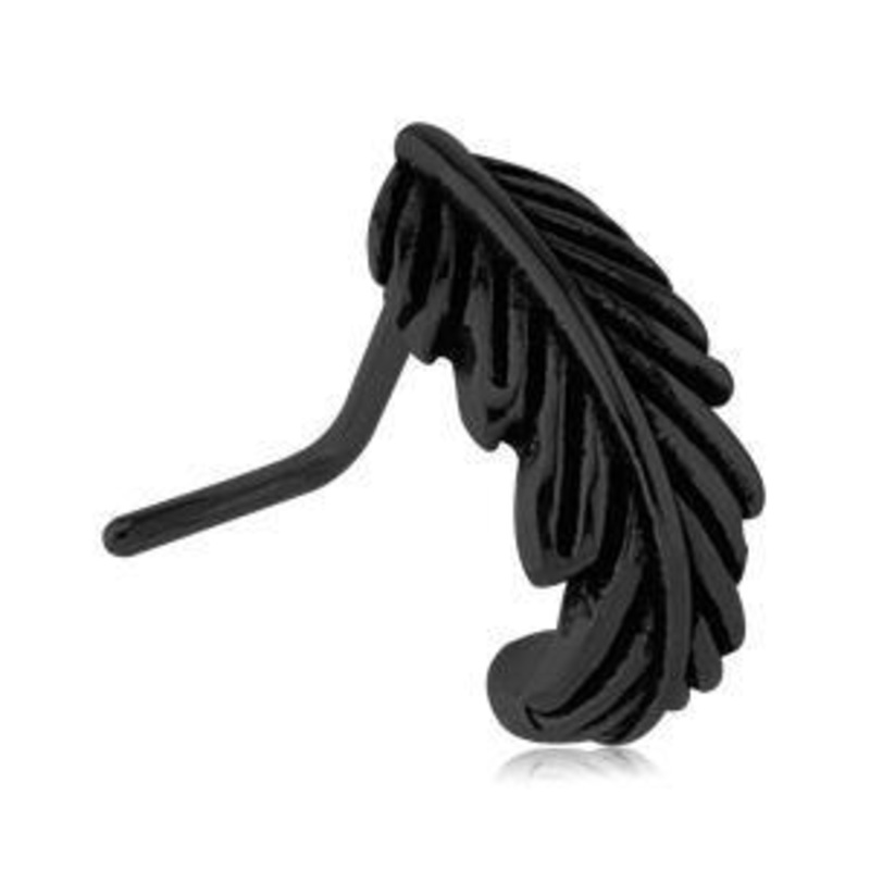 The feather L-bend nose hoop is made from black PVD coated 316L stainless steel. The hoop has a 5/16" interior diameter.