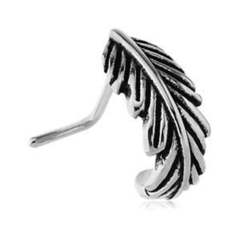 The feather L-bend nose hoop is made from 316L stainless steel. The hoop has a 5/16" interior diameter. Choose your size below.