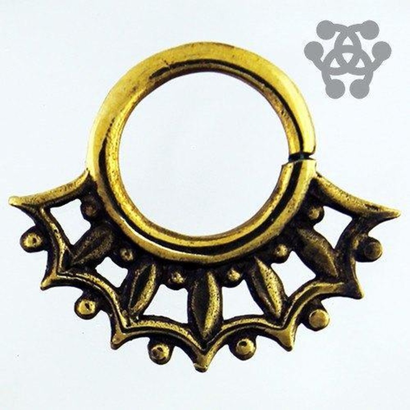 The 14 gauge fern septum ring is cast from solid brass. Brass is not meant for long term wear and may oxidize under extreme moisture conditions. If you're unsure how to open and close continuous rings (a.k.a. seamless), be sure to check out our video demon