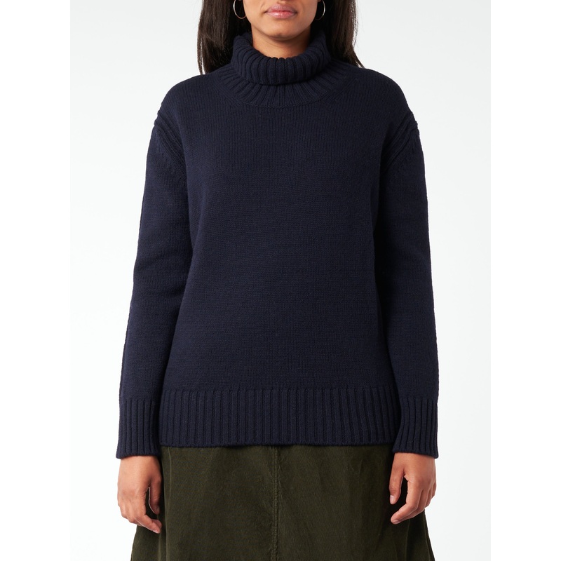 &Daughter Fintra tunic knit crafted from pure Yorkshire-spun lambswool. Made from a 4-ply heavy gauge knit that provides softness, volume and warmth.High collarDropped shouldersExtra-long sleevesRib seam detail down the sleeveWide rib cuff and hemSlouchy,