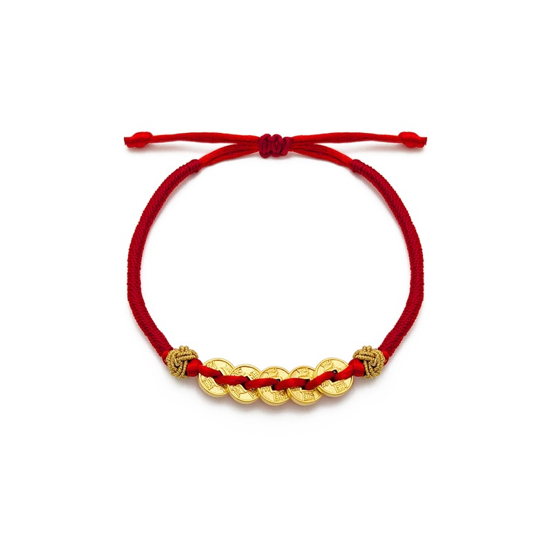Five Lucky Cash Coins Red String Bracelet (24K)