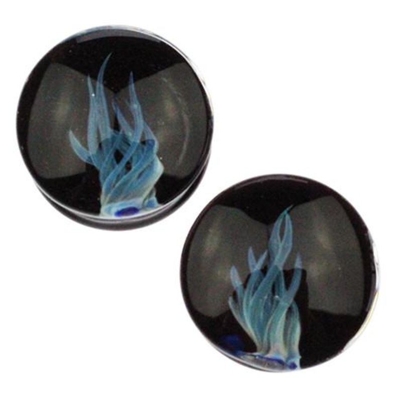 These double flare flame plugs are made from hand blown borosilicate glass by Glasswear Studios. They have a wearable area of approximately 3/8″ between flares. They can be worn backwards to show the plain glossy black side. These have been discontinued and will not be available when we run out of our current inventory. Choose your size below.