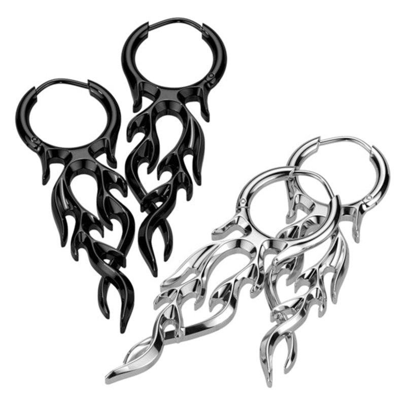 These 18 gauge flaming hoopearrings are made from 316L stainless steel. Choose your finish below.