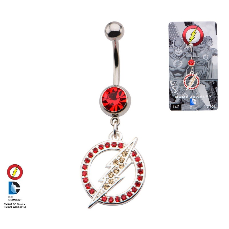 The 14 gauge flash belly dangle is made from 316L stainless steel with external threading. Only the top 5mm ball is removable.