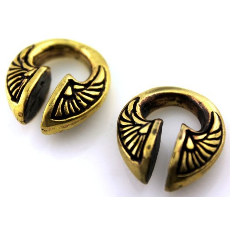 These flashback weights are cast from solid yellow brass by Oracle Body Jewelry. They fit stretched ear lobes sized 7/16-inch or larger.Dimensions: 25mm high X 22mm wideWeight: approximately 13.5 grams each piece