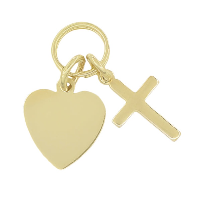 Flat Engravable Heart and Cross Charm in 14 Karat Gold