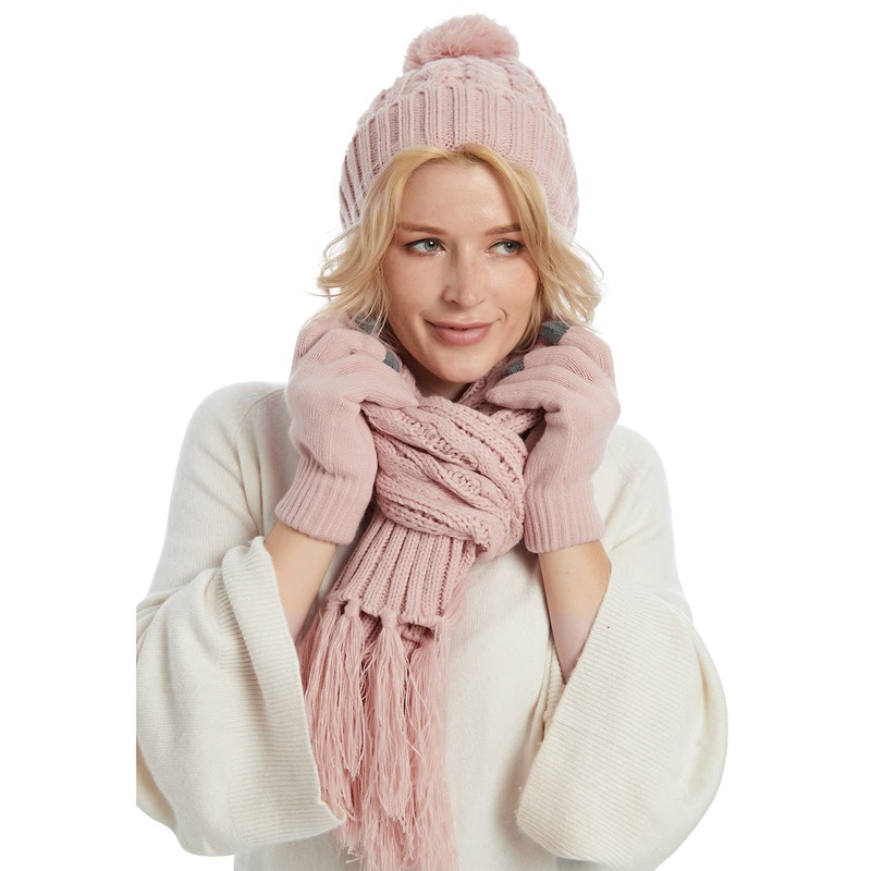 Fleece Lined Cable Knit Beanie Hat Scarf Glove SetIntroducing our Fleece Lined Cable Knit Beanie Hat, Scarf, and Glove Set your perfect companion for winter elegance and warmth. Crafted with care from premium acrylic, this set offers a luxurious blend of b