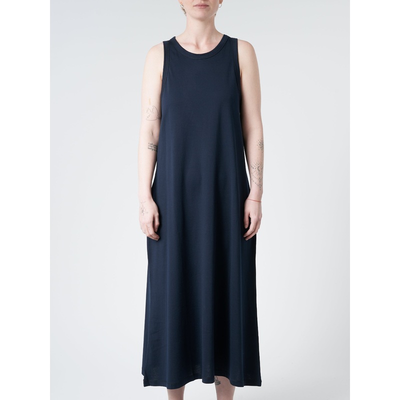 A fluid tank dress made from a mid-weight cotton jersey featuring a round ribbed neck and armholes.Round necklineSleevelessRibbed neck and armholeMidi lengthMaterialsFabric Content: 100% cottonMade in PortugalSize GuidePascale wears size 2. She is 5'10"; b